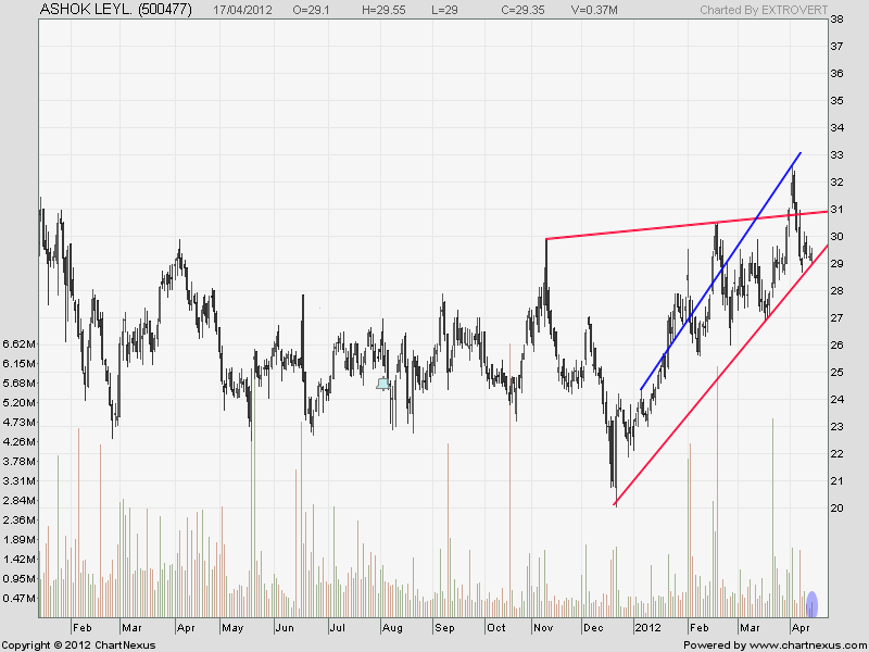 Ashok Leyland has taken support at its trendline and shown a bounce back with good increase in volume.