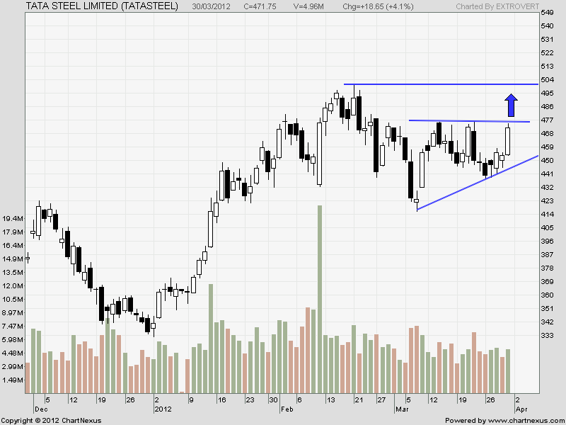 Laxman Rekha at 475.8. Trade above this Tata Steel will show a fast move, as it shows a breakout.