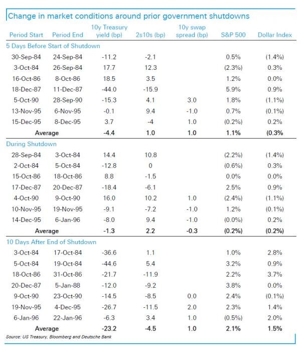 Market reactions to prior shutdowns and debt limit events, from Deutsche Bank