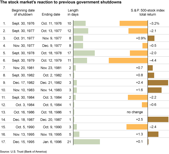 U.S. GOVERNMENT SHUTS DOWN FOR FIRST TIME IN 17 YEARS so lets asses the market reaction on prior shutdown.